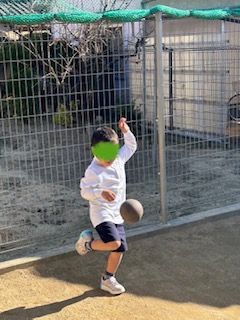 自由遊びでは好きな遊びを楽しんでいました🎵寒くても外遊びが人気でボールをけったりおにごっこをしたりして、限られた時間の中で思いきり楽しみました‼