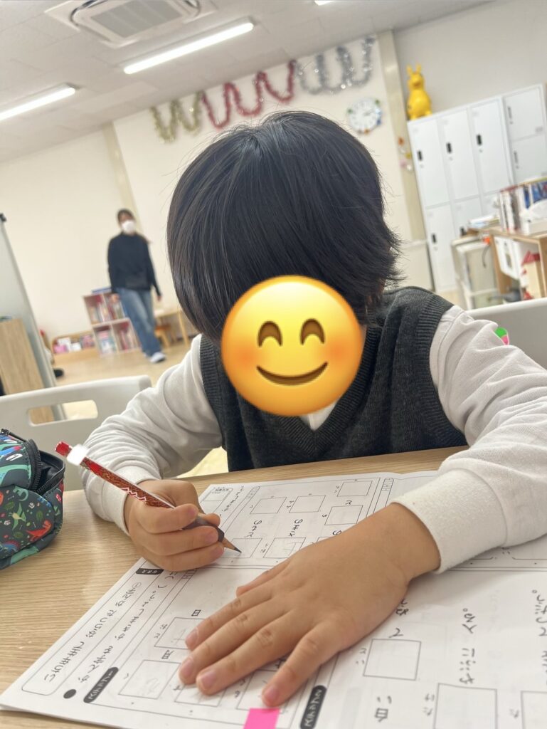学年のまとめの3学期。学習も難しくなり、今まで習った事を応用しながらの課題になっていますが、静かに集中して取り組めていますよ✨