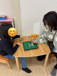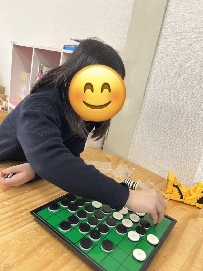 オセロでは、スタッフと対決をして「ここに置こうかな?」と真剣に悩みながら、行っていました。