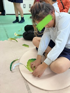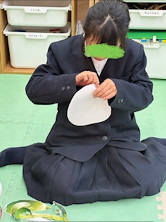 みんな上手に指先を使ってりんごの形に沿いながら、ゆっくり、じっくりと紙をちぎっていきました!