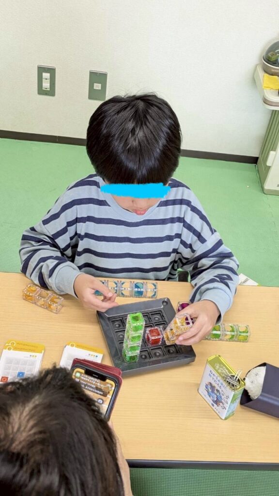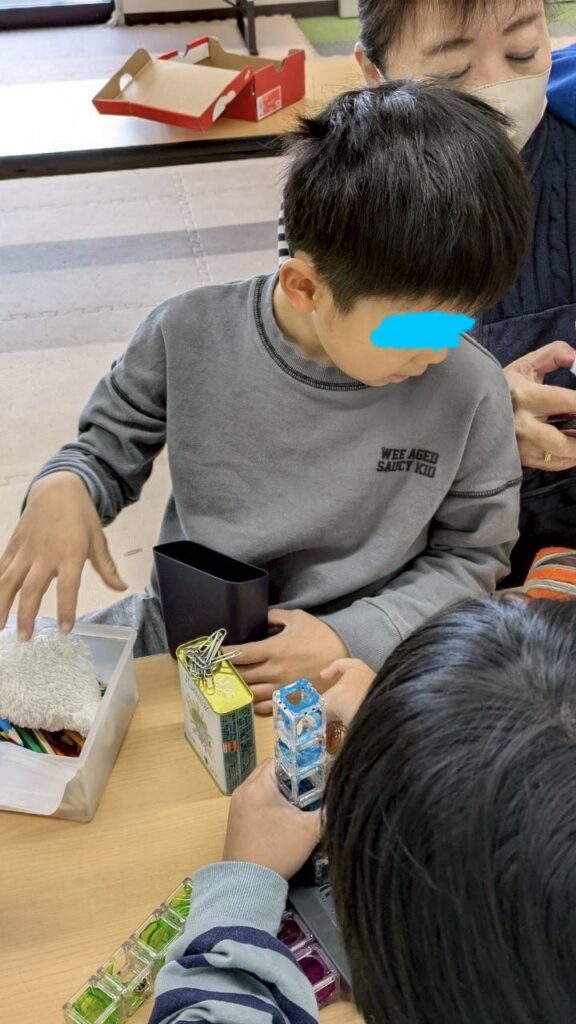 中身のパーツやラメ、周りに貼るシールも、好きな物を選んでもらい、世界に一つだけのセンサリーバッグを作りました😊