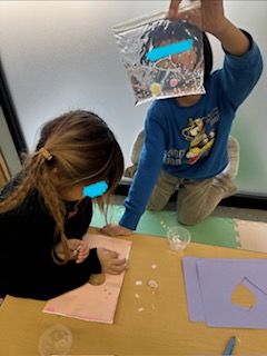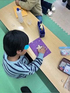 お楽しみ会では、「キラキラセンサリーバッグ作り」を行いました!