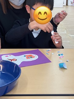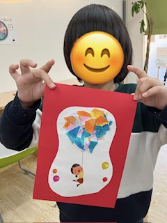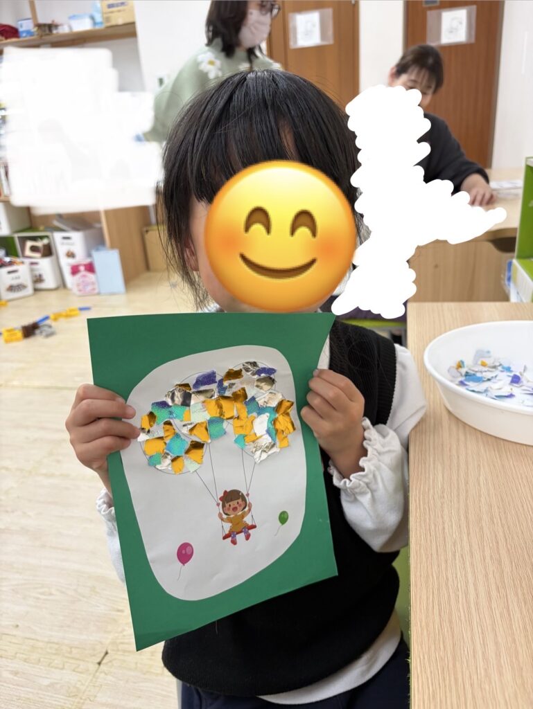 今回は風船の絵の中に紙を貼っていく活動でしたが、色とりどり・個性的で可愛らしい作品が出来上がりましたよ😊✨