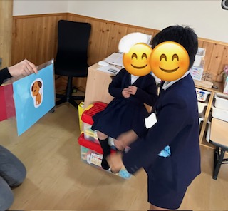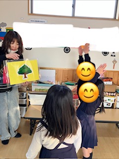 色と絵を組み合わせ、スタッフが「色です!」と伝えると出されている色の動きをし、「絵です!」と伝えると出された絵の動きをする活動です!
