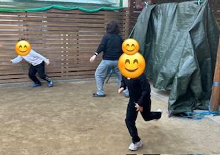 自由遊びでは、お外では鬼ごっこやサッカー、バトミントンをしました!