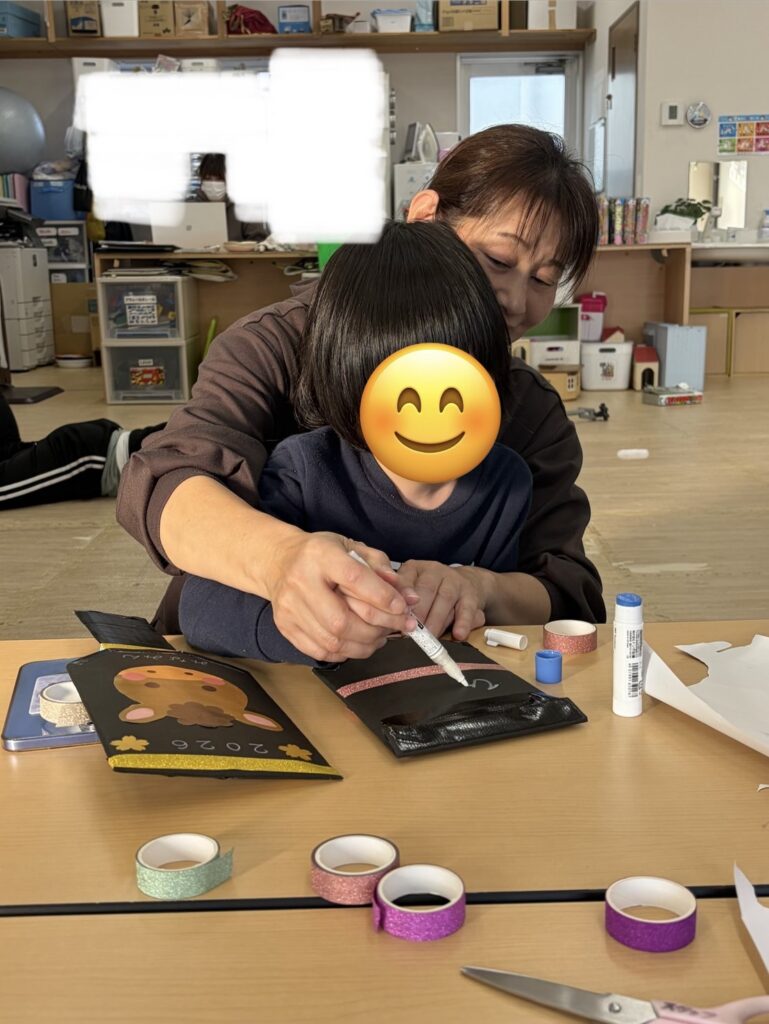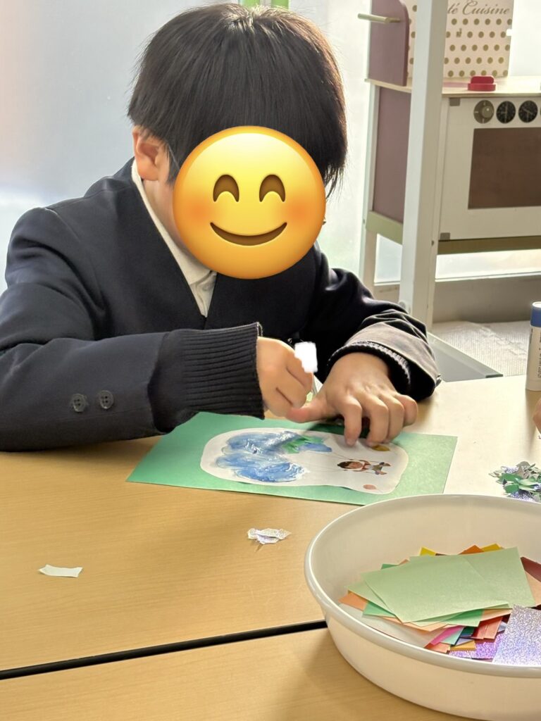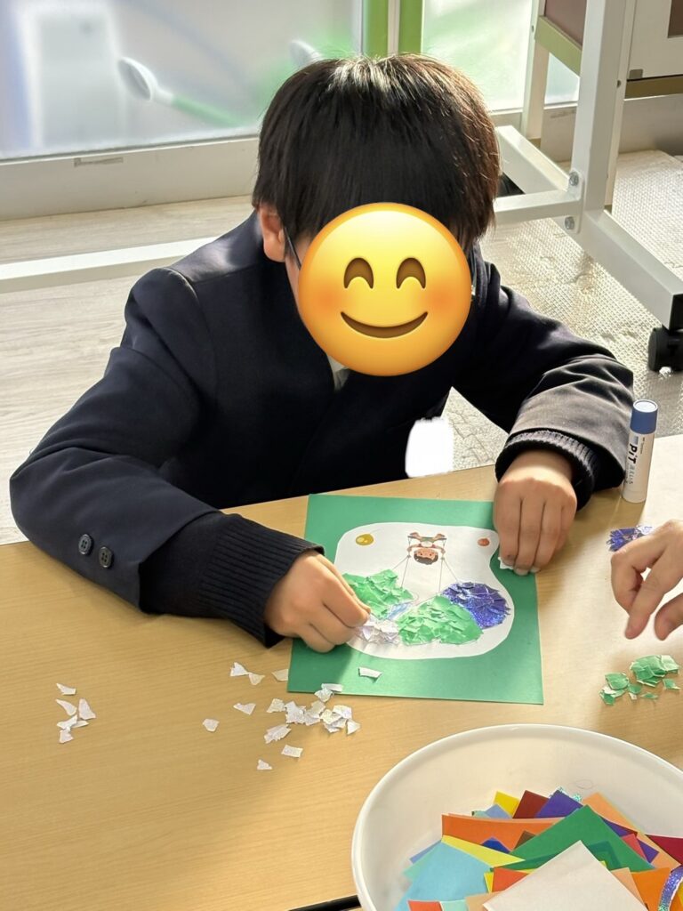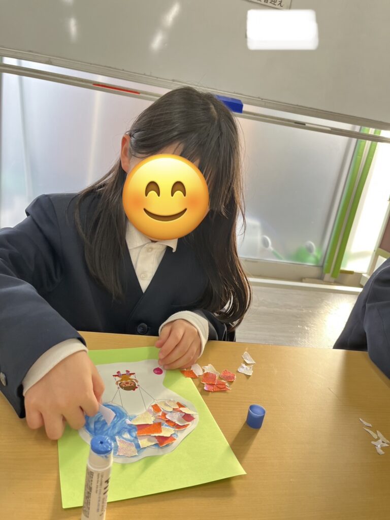 そしてこの日は自立活動の日でした。ちぎり絵や、羽子板作りの続きをしました!