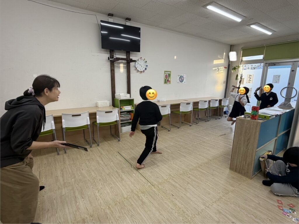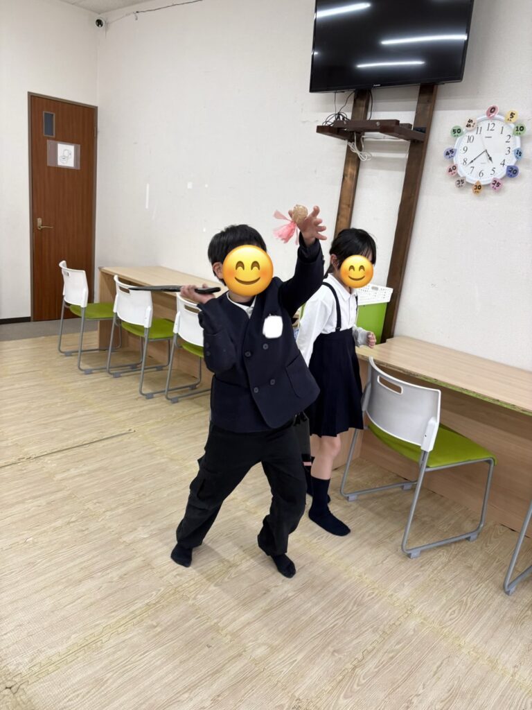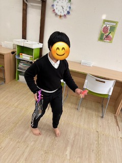 そのあとは作った羽子板で早速楽しそうに遊んでる姿がみえました🤭
