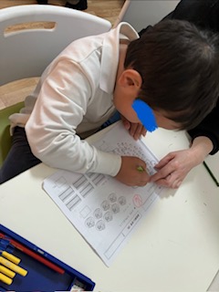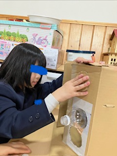 スタッフと工作でガチャを作っているお友だち😊発想力や想像力が素晴らしいです。