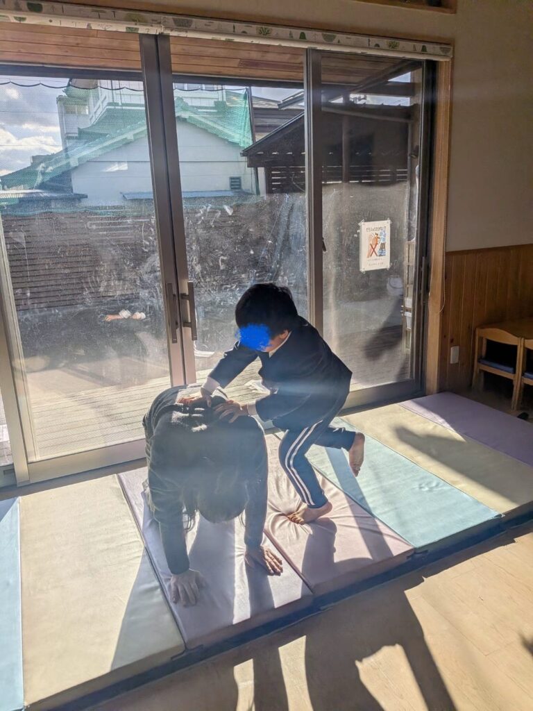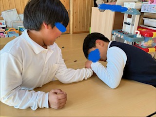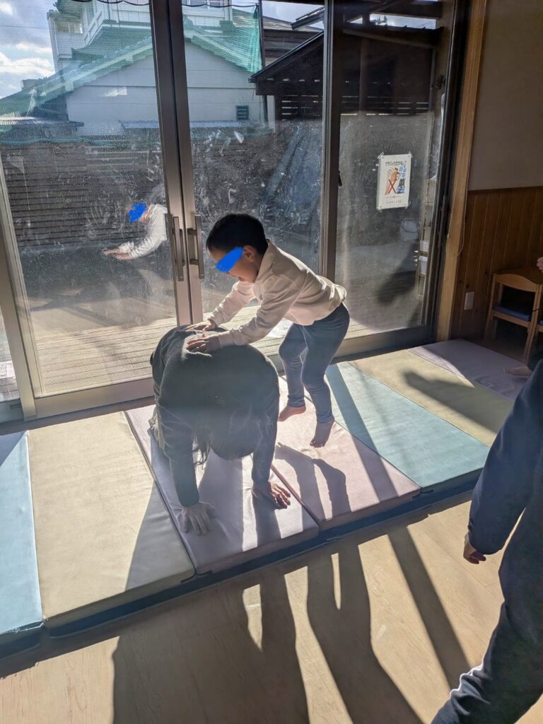 他にもコグトレ棒を使って身体の使い方を知ったり、腕相撲をしたりトランポリン、馬とび、マット遊び色々な遊びを楽しんで過ごしていましたよ(^^)v