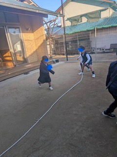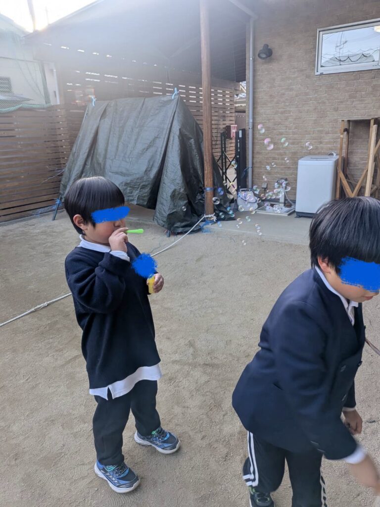 外で長縄やシャボン玉をしたり元気に走ったりしました(*^^*)寒さに負けていません‼✨