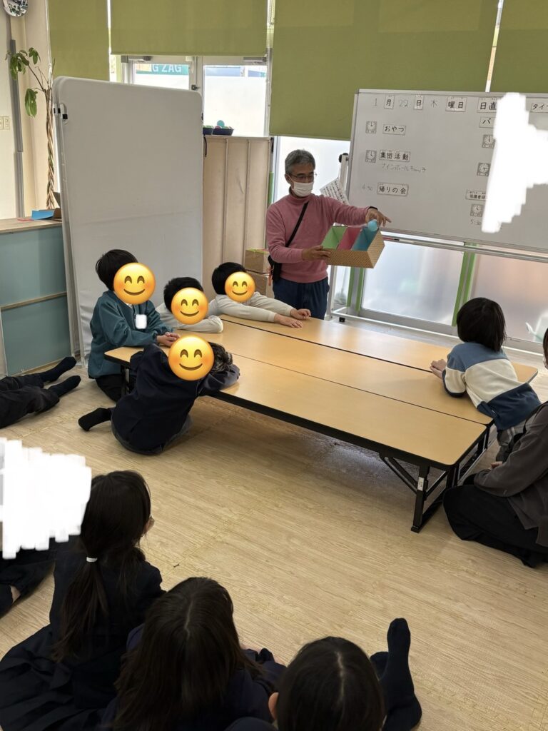 本日の集団活動は【ナインボールキャッチゲーム】を行いました🔴🟢🔵