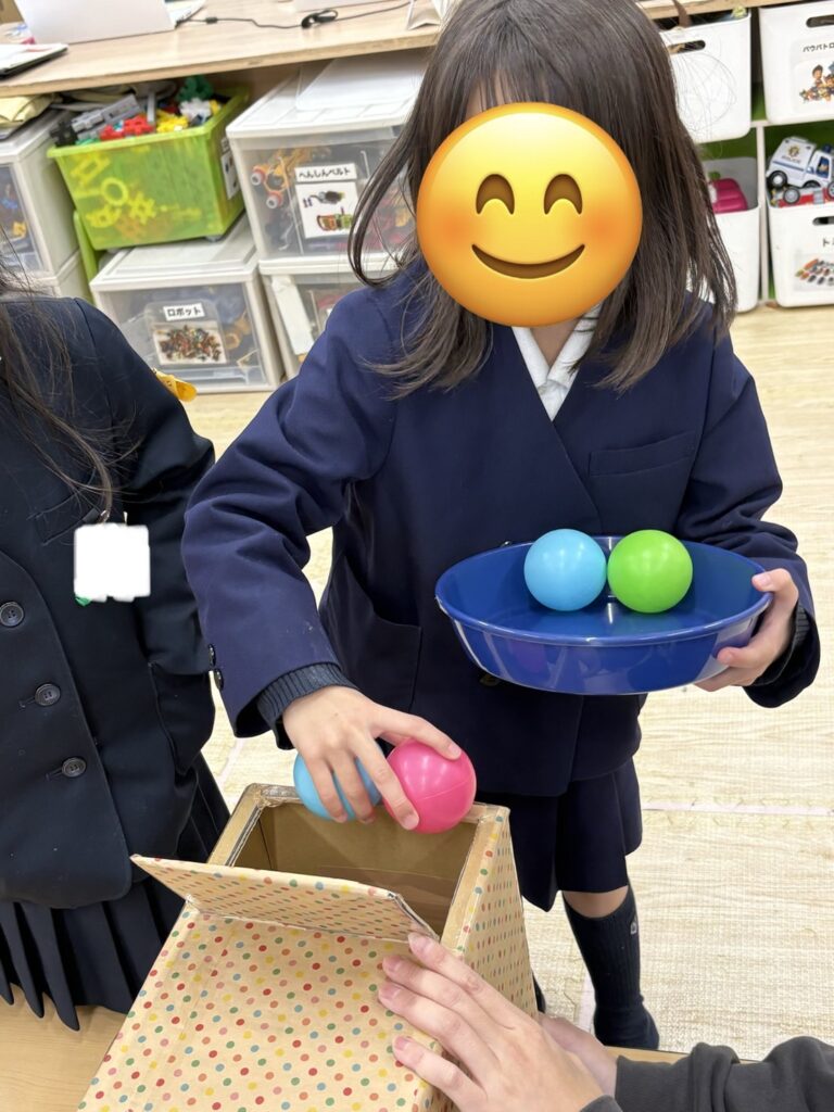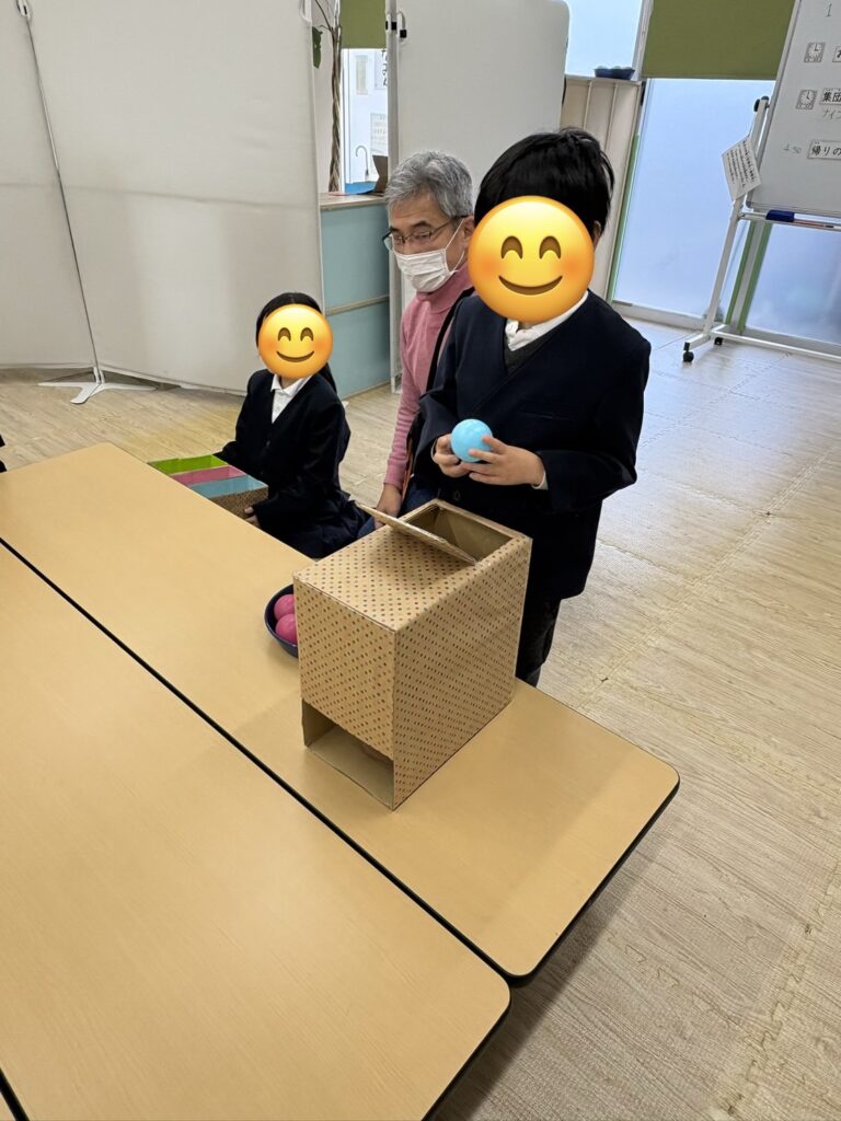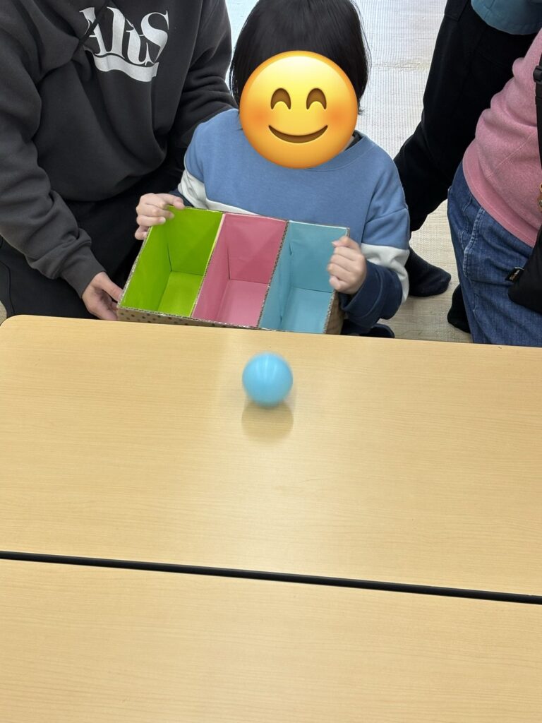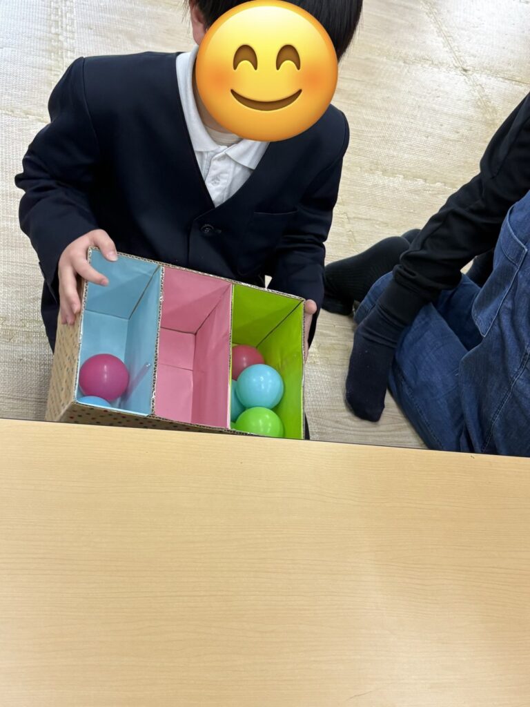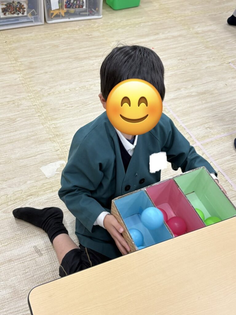⚪︎同じ色のボールを箱に分類できたことで達成感や自己肯定感の向上につながります。