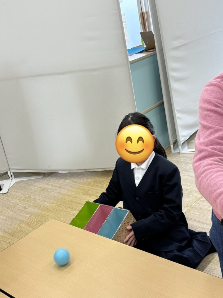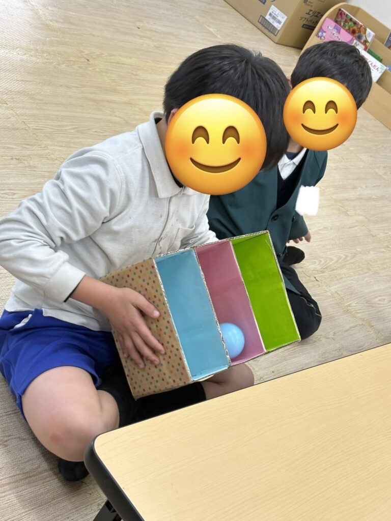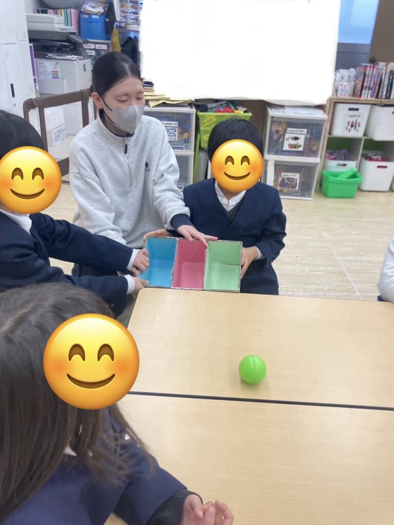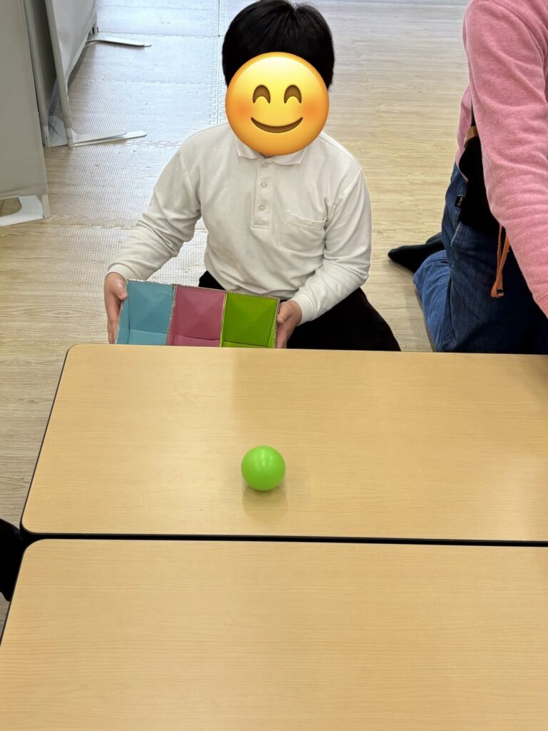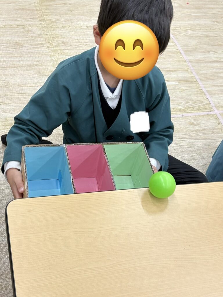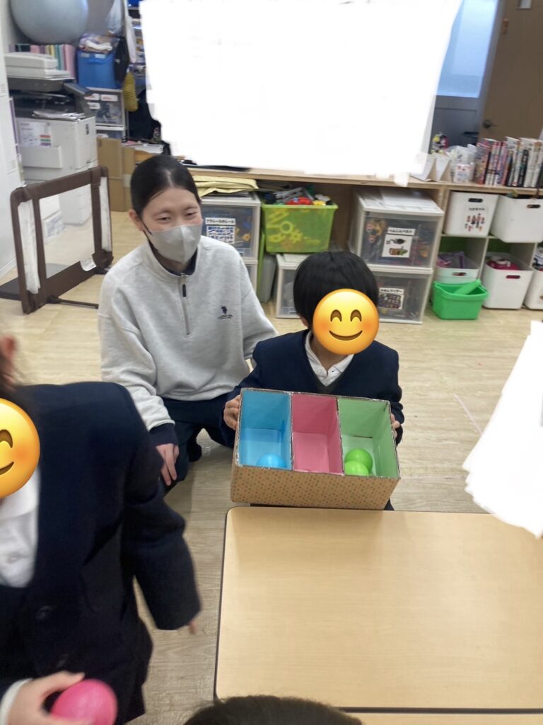 ⚪︎同じ色のボールを箱に分類できたことで達成感や自己肯定感の向上につながります。