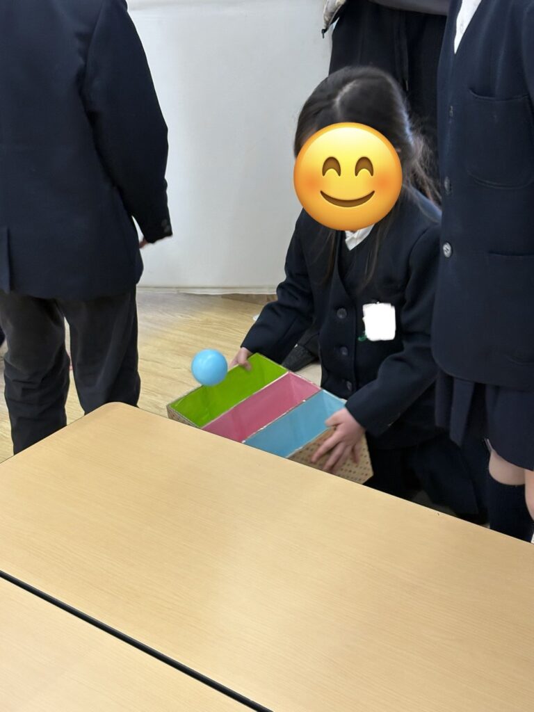 ルールを守ってボールを順番に転がしたり、箱の中に上手くキャッチすると「できた!」「やった!」「入った!」と大喜び🤗