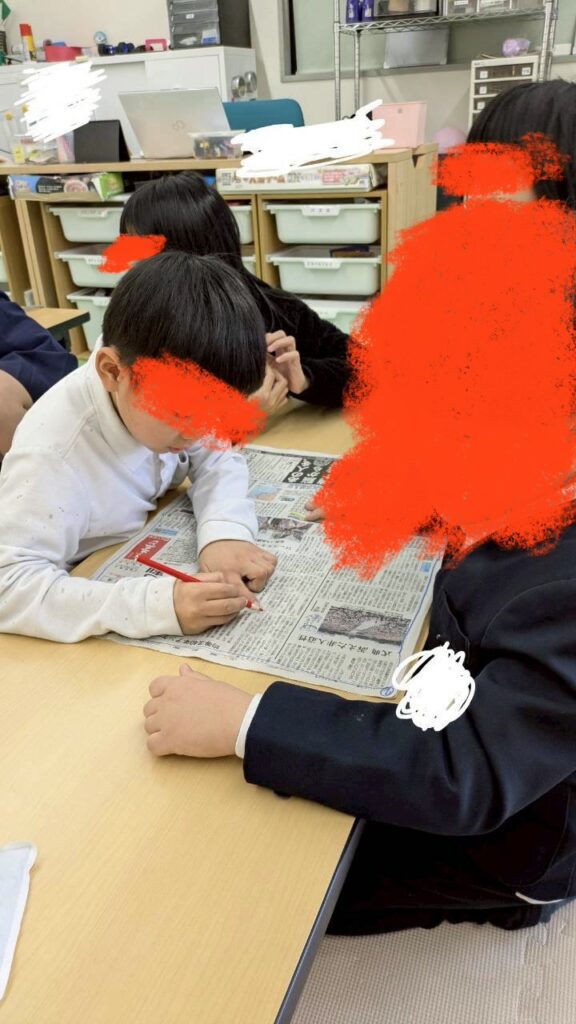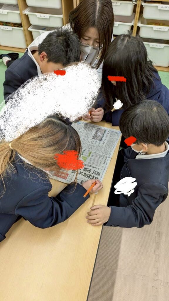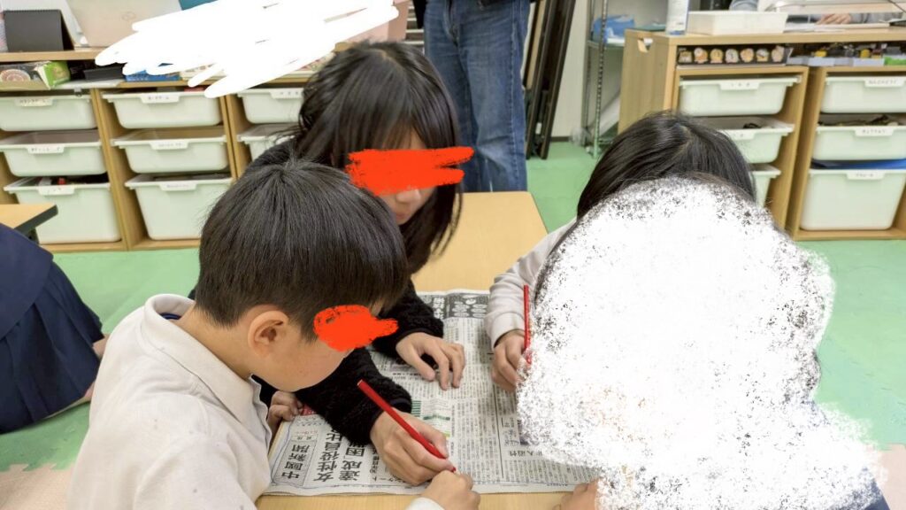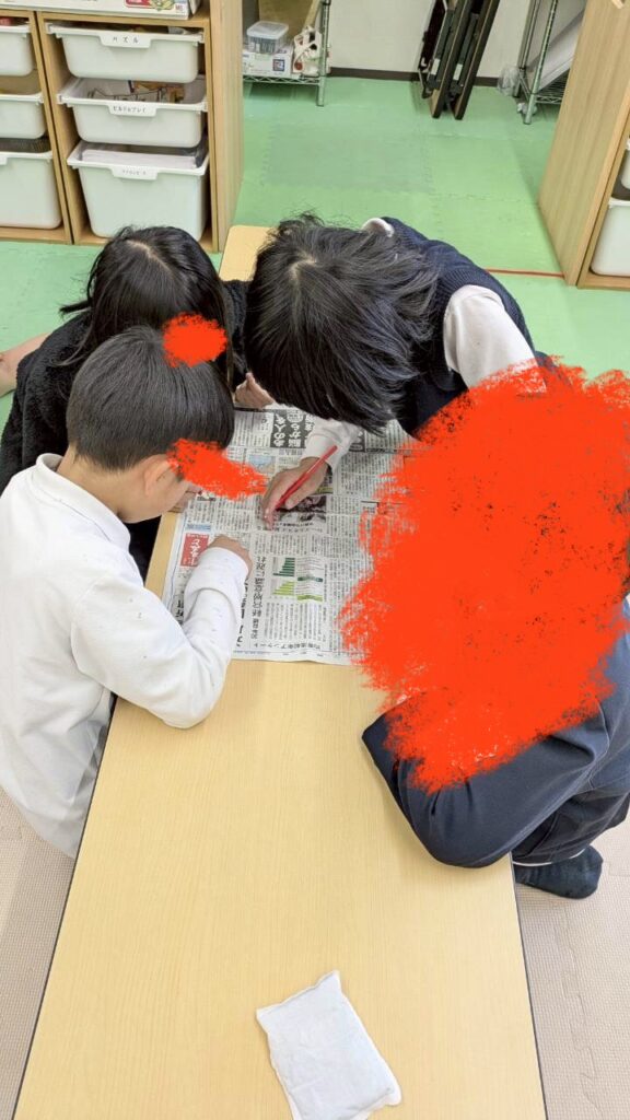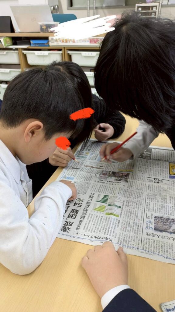 2チームに分かれ、新聞記事の中からお題の文字を探します👀🔎