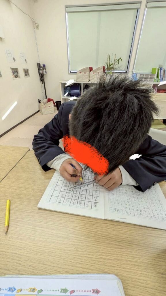 きちんと座り文字を見つめることで、集中力を鍛えます!