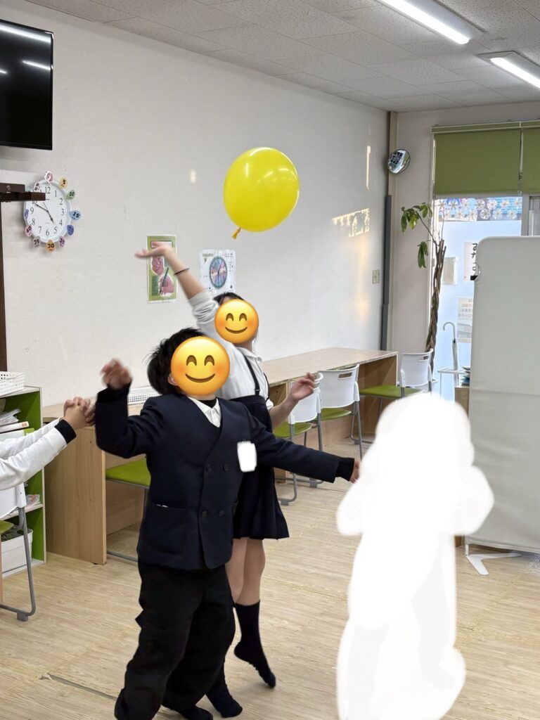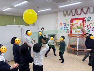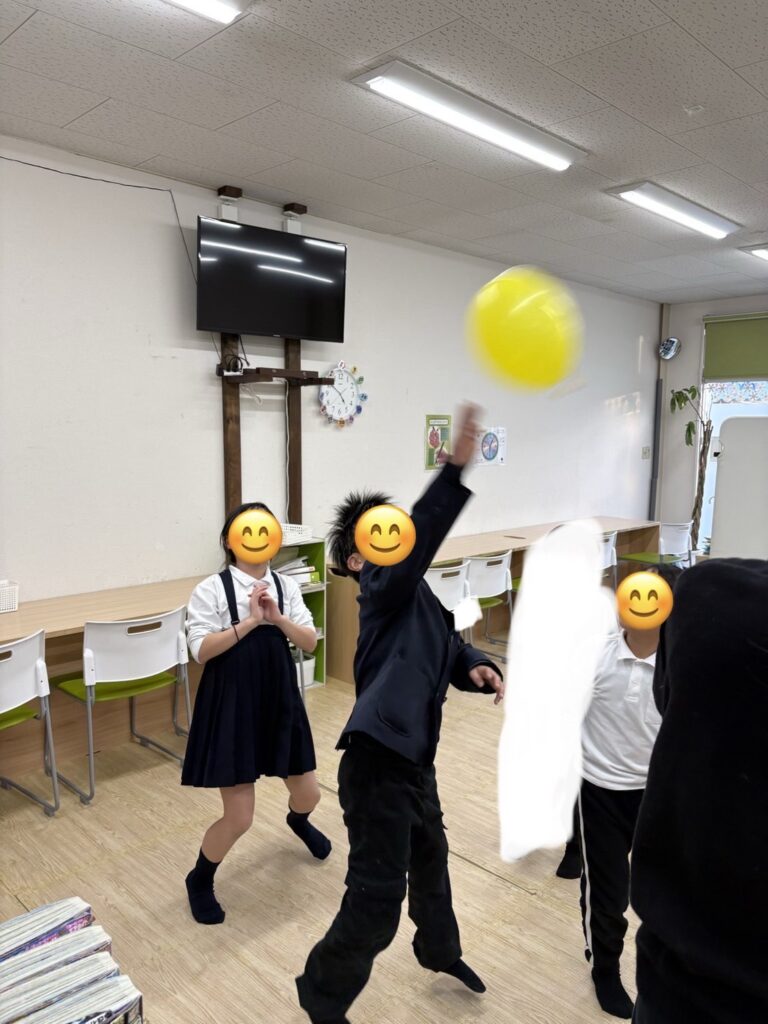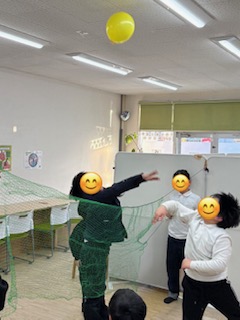違う場所では、ネットをはって風船バレーをチーム戦で行いました✨