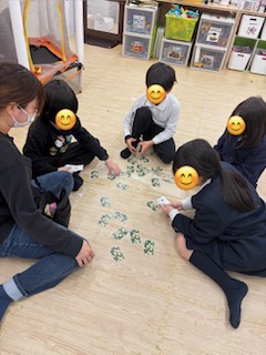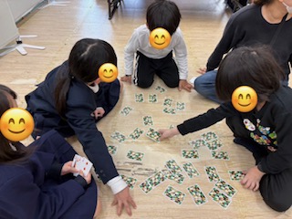 ペーパークラフトでカットして遊んでいる子や、神経衰弱をして遊んでいる様子が見えました😉神経衰弱で連続で取っているお友達に「おぉ~!」と言って拍手していた優しいお友達もいて見ていてほっこりしてしまいました🤭