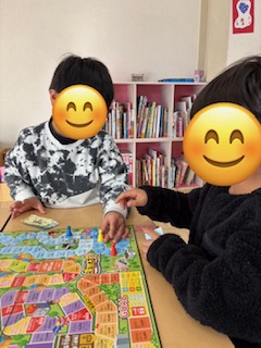人生ゲームやレゴで仲良く遊んでいます😊折り紙では作り方を見ながら、教え合い、バラの花やパタパタ鶴を折っています😊上手にできましたね❣️