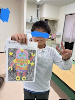 塗り終えると達成感で満足気なお友だちです(*´艸`)
