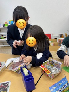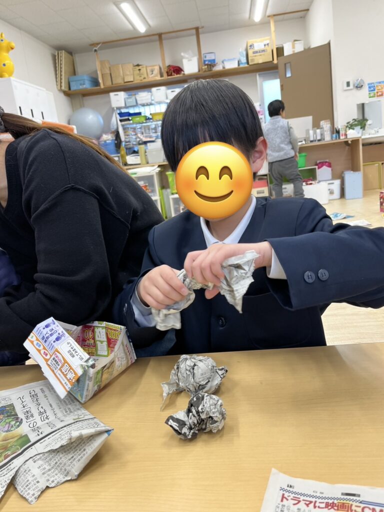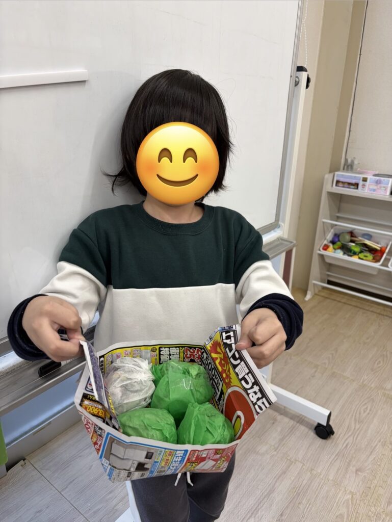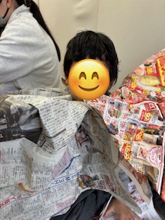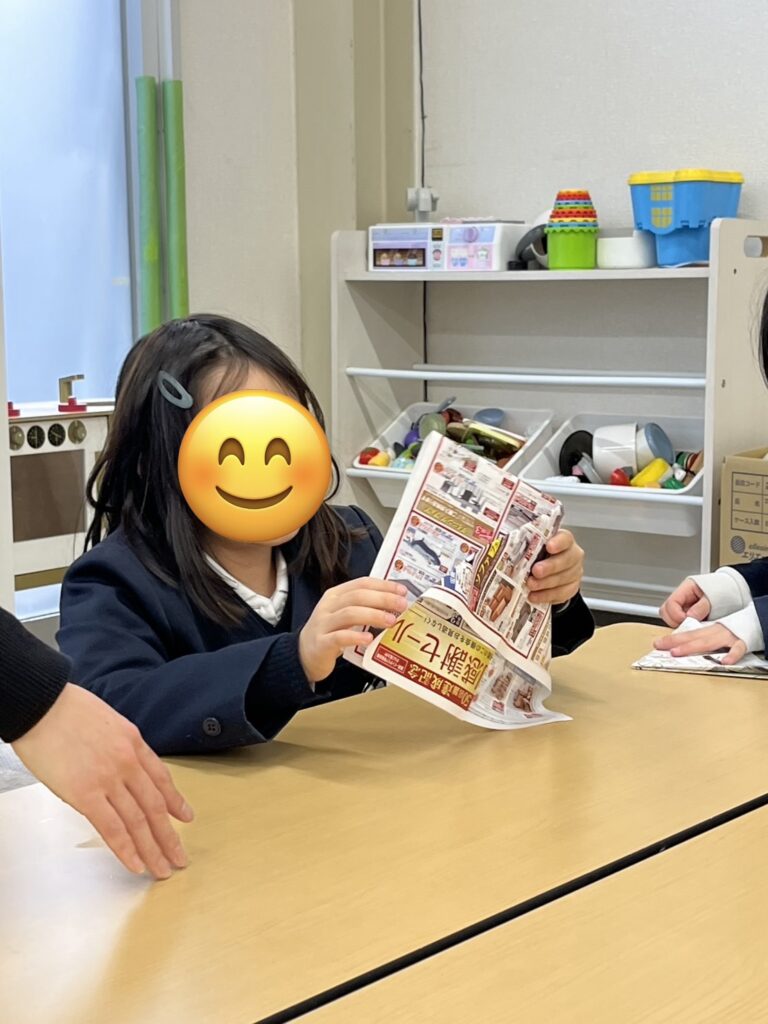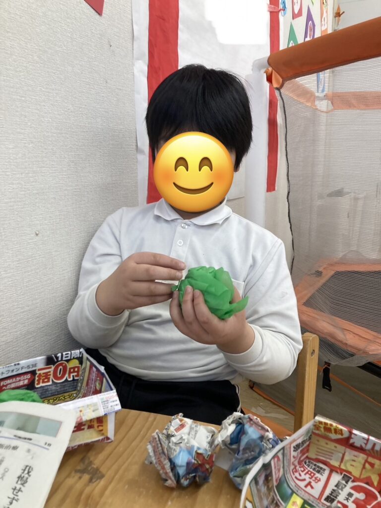 新聞紙やチラシをやぶって渡してくれる優しいお友だちもいましたよ🤭