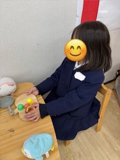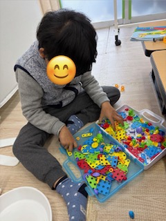 自由時間の遊びは、音の鳴るおもちゃを移し替えたり、