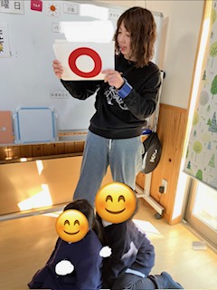 昨日の集団活動では、まず最初に節分にちなんだ〇✖ゲームをしました!