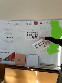 「鬼は~外、福も~外」〇か?✖か?という問題はみんな「簡単すぎ~!」とみんな言っていましたが、2月3日は鬼の誕生日である?など少し難しい問題はみんな一生懸命考えながら動いていました!