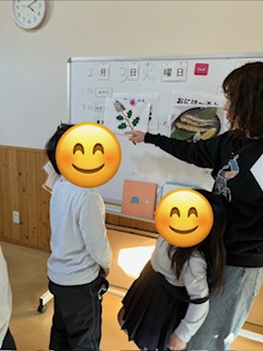 そして、答えと一緒に少し節分のお話も一緒にしました!本当の鬼が来るんじゃなくて心の中の鬼を退治するんだよというお話をすると「鬼が来ると思って怖かったけど安心した~✨」と言っていたお友だちもいましたよ😄