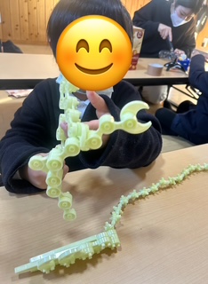 自由遊びでは、室内では工作やルミノイド、レゴなど何かを作ったり、プールスティックをくぐったりジャンプしたり体を動かして遊びました!
