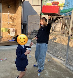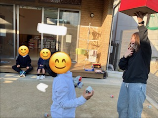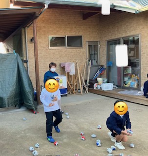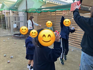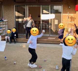 昨日は寒かったですが、良いお天気だったのでお外に出て玉入れをしましたよ!