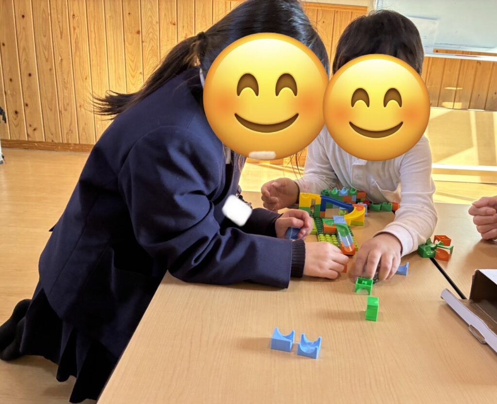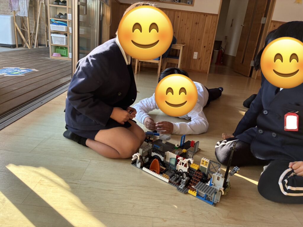 自由遊びの時間では、室内では旗揚げゲームをしたりレゴやルミノイドなど何か作って遊ぶ遊びをお友だち同士が誘い合って遊んでいましたよ!