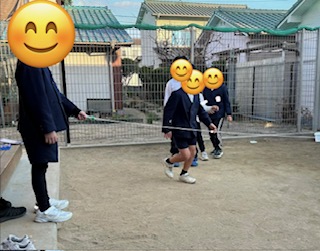 お外では集団活動の後に縄跳びを使ってゴム跳びをしていました!
