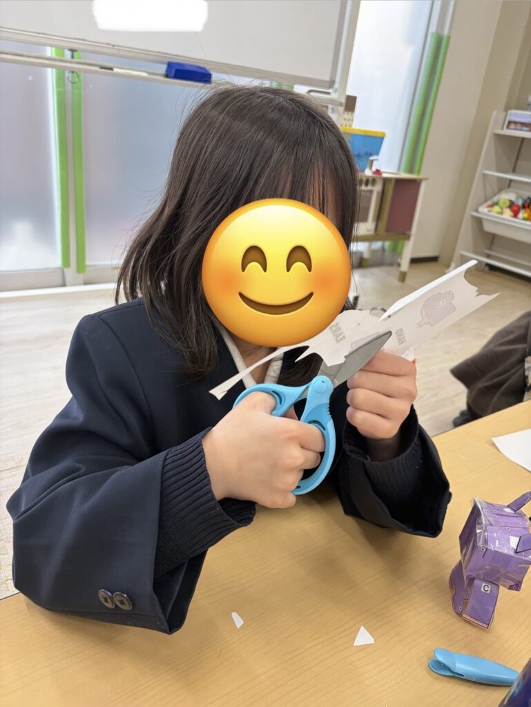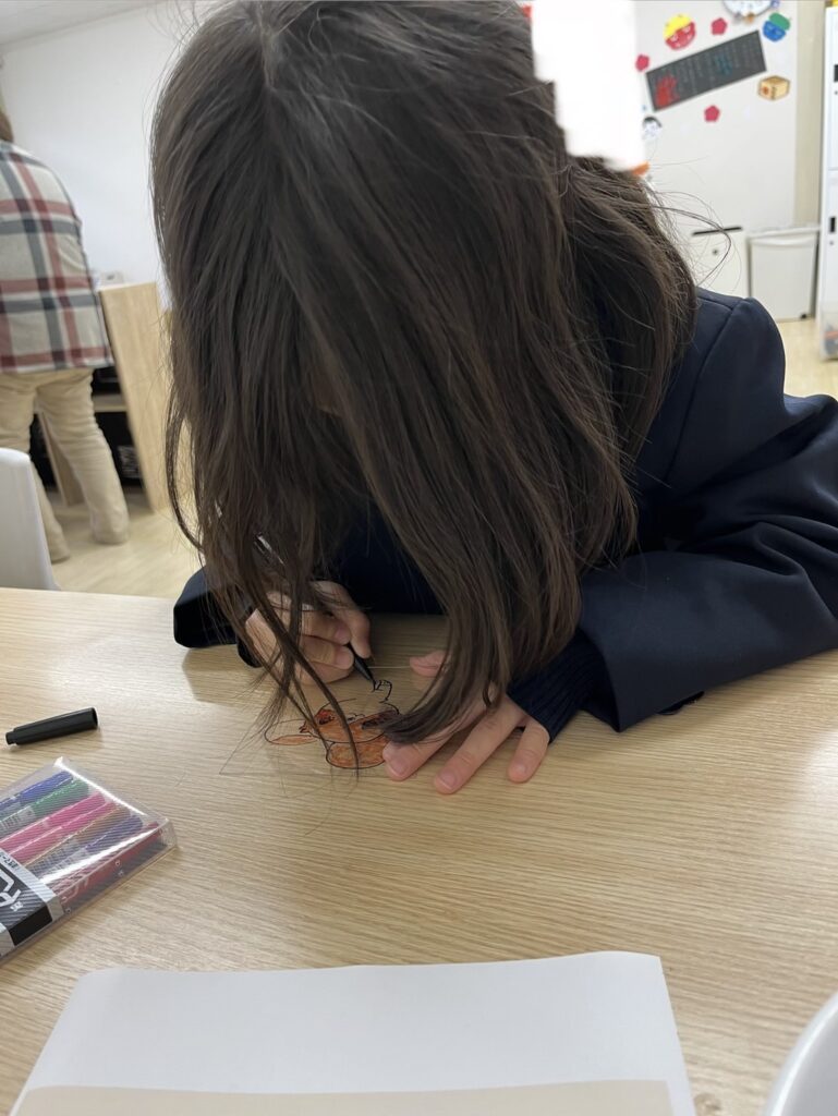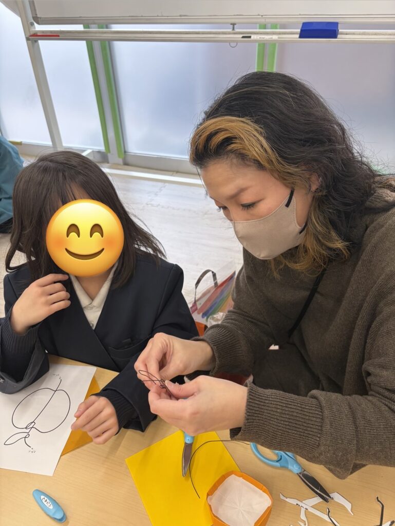 課題が終わった子は、ペーパークラフトで大人気ラブブやクワガタを作り、