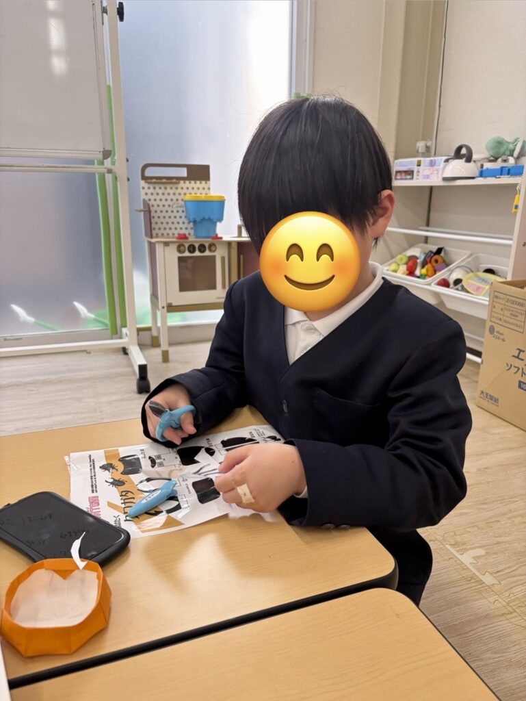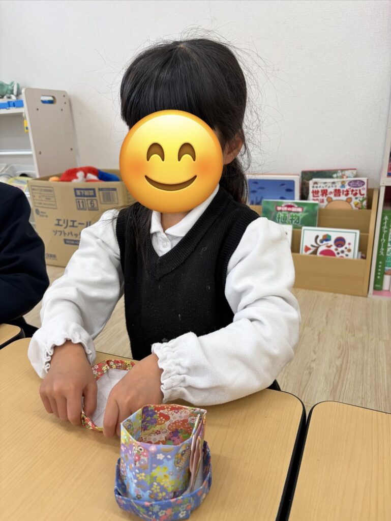 糊を固めて遊び、折り紙でシュークリームボックスを作成していました☺
