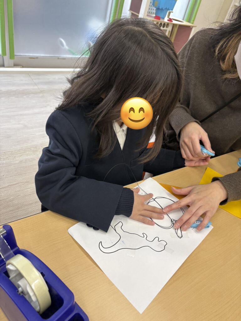 ワイヤーを使って恐竜などを作るワイヤーアートを作成していました😊