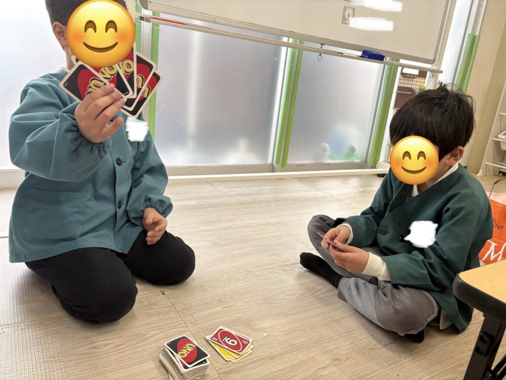 UNOや入荷したばかりの本を読んだり、ブロックスで遊んだりそれぞれの遊びを