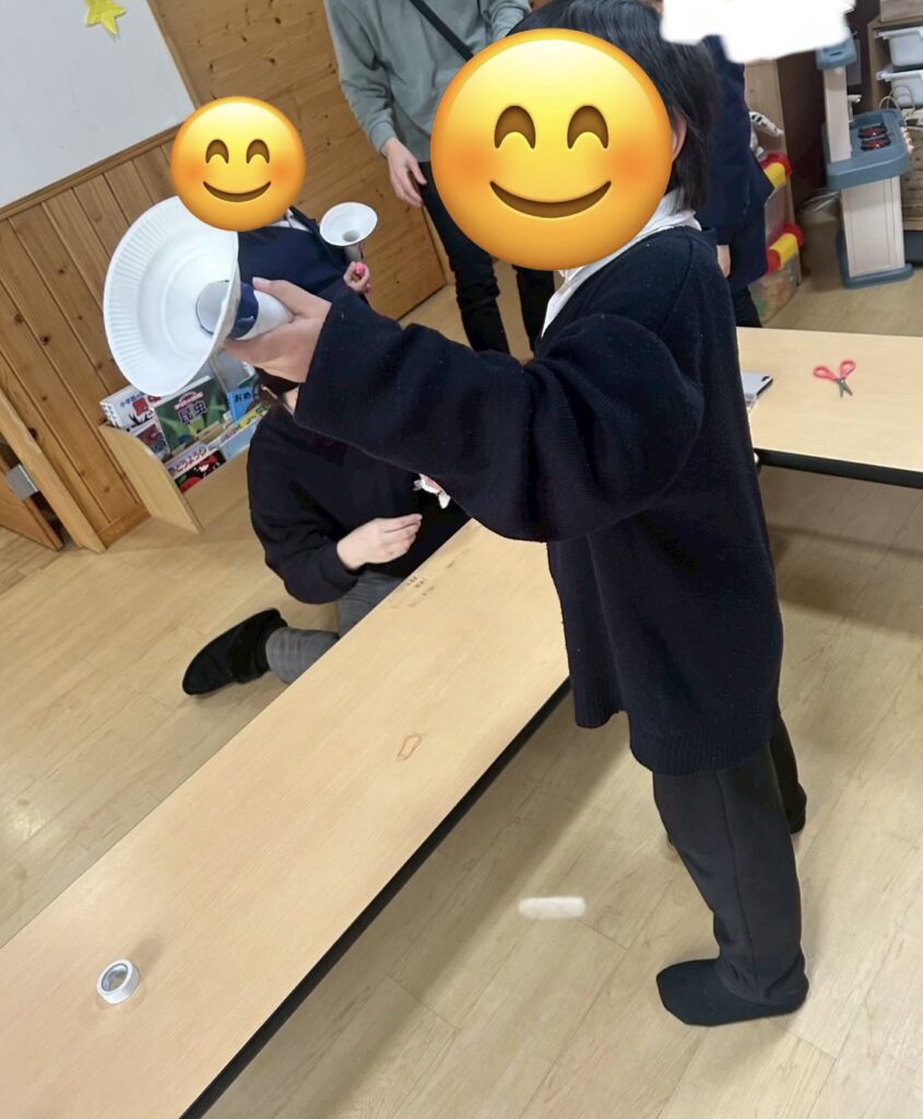 出来上がったら、ニコニコ笑顔で、遠くに飛ばしたり、的をめがけて飛ばしたり、天井に向けて飛ばしたり、思い思いに楽しんでいましたよ✨