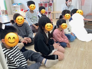 みんな真剣に絵本のお話を聞いていました😌