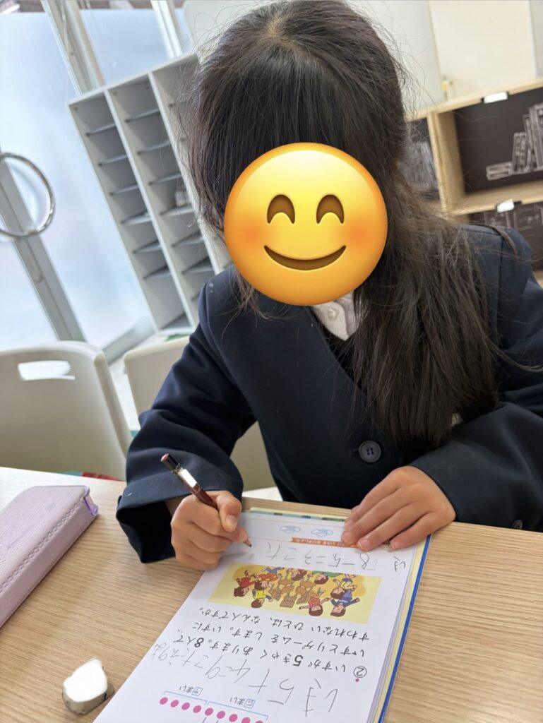 算数の文章問題を解いていた子は、問題文をしっかりと読み、足し算なのか引き算かをじっくりと考えて、取り組んでいました。