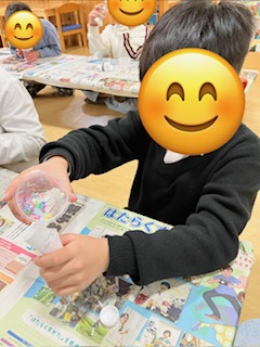 昨日の集団活動ではスノードームを作りました!