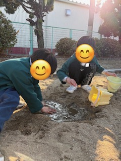 砂場で遊んだり、木の棒を使って楽器遊びをしています🌟