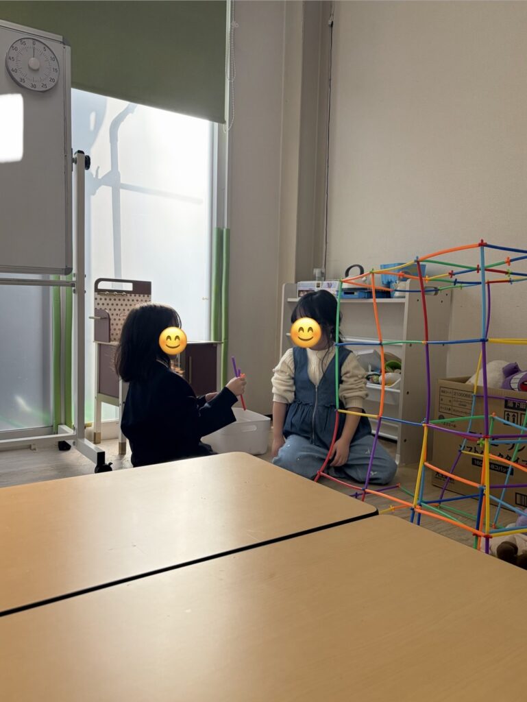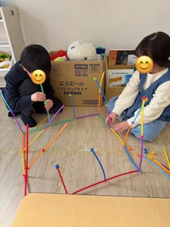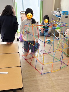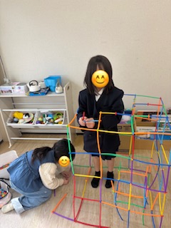 自由時間ではロンビーという細い棒で小さなお家🏠を作っていました☺