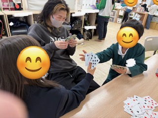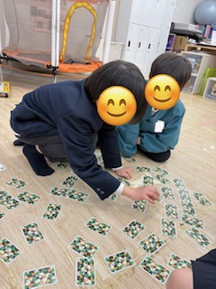 ブロックで大好きな恐竜🦕を作ったり、トランプでババ抜きや神経衰弱、人生ゲーム、スライムで仲良く遊んでいます🤗