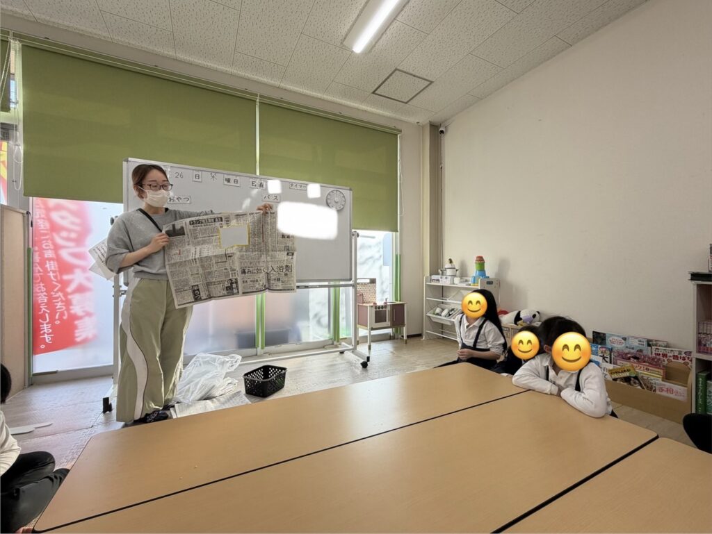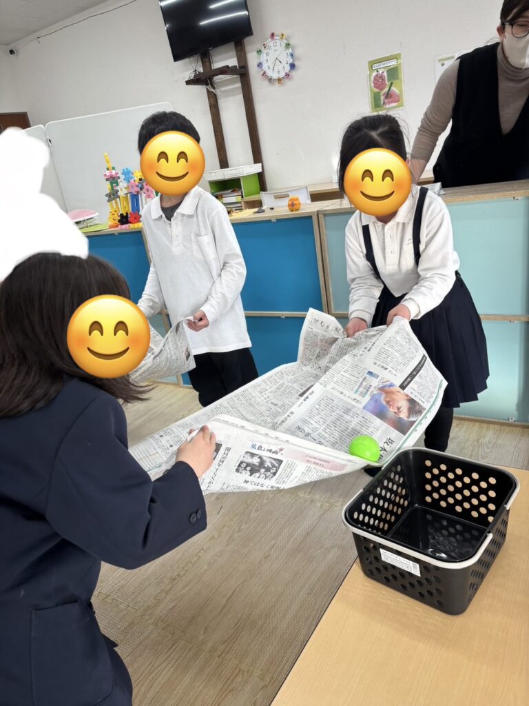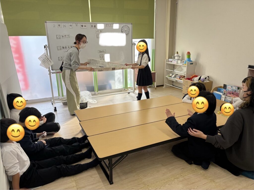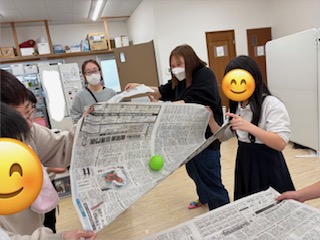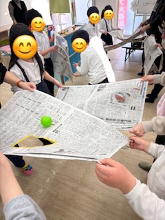 この日は、集団活動で「新聞ボールゲーム」を行いました!