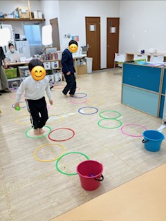 相手の気持ちを考えながら、棒を投げてキャッチしたり、棒が倒れる前に移動している姿が見られました!