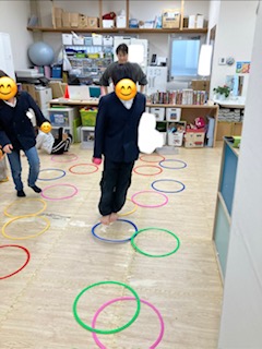 リングが置いてある場所などをよく見ながら、1つずつ跳んでいる姿が見られました!