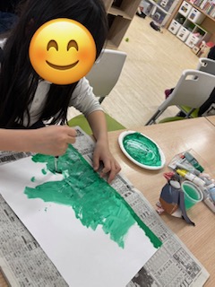 他にも、絵の具を使って絵を描いたり、好きなキャラクターを描いたりと工作を楽しんでいる子が多くいました。