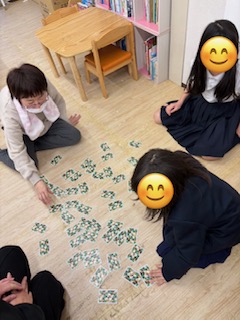 トランプで神経衰弱をしていた子たちは、お友達とどちらが多くのカードを取れたのか対決をしていました!