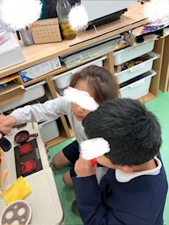 自由遊びの様子です。お友だちと声を掛け合って楽しく遊びました🎵